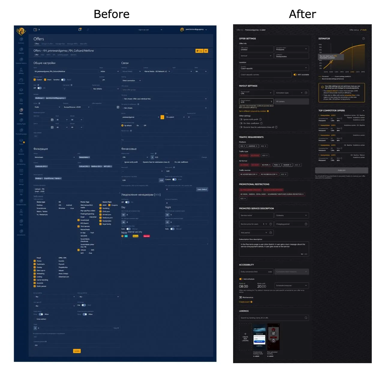 - Developed back office with analytics, traffic quality insights, client profiles, and monitoring tools