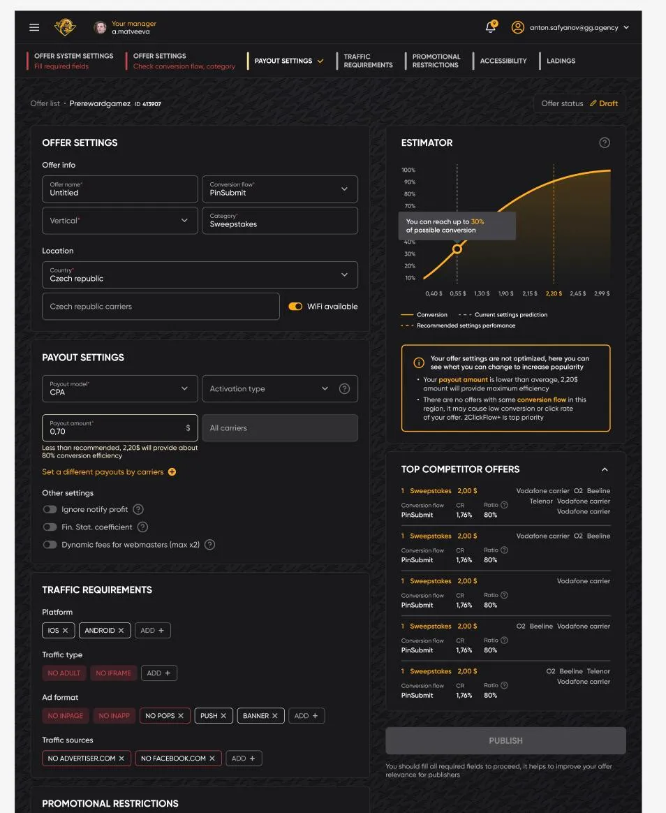 - Improved traffic quality control and margin monitoring, reducing low-quality traffic spend and recovering up to 10–15% of previously lost margin